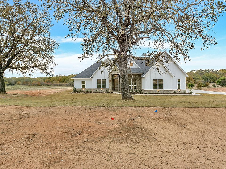 This stunning custom home, situated on approximately 2 scenic acres within the highly regarded Peaster ISD, boasts a blend of luxury and functional design. Featuring exquisite quartz countertops, handscraped hardwood flooring, and elegant charcoal cabinets accented with brass hardware, every detail has been meticulously crafted. The split floor plan includes a spacious primary suite with an ensuite bathroom equipped with a soaking tub and rainfall shower, while the expansive primary closet conveniently connects to the laundry room. Additional highlights include a game room, total foam encapsulation for energy efficiency, and an inviting outdoor fireplace, all set against a backdrop of beautiful trees and views.