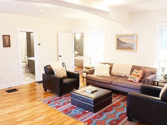 Sharp bungalow in the Barker Neighborhood. Undated kitchen with high end stainless appliances with gas cooktop and wall oven. Bathroom has been updated with beautiful stone tile tub/shower. A lovely front porch and back patio give this home 2 great additional living spaces! 1 outbuilding is newly sided/painted and the 2 storage building needs work but has endless possibilities. Fully fenced yard. New furnace/ac, hot water heater, new plumbing and electrical. Lots of parking