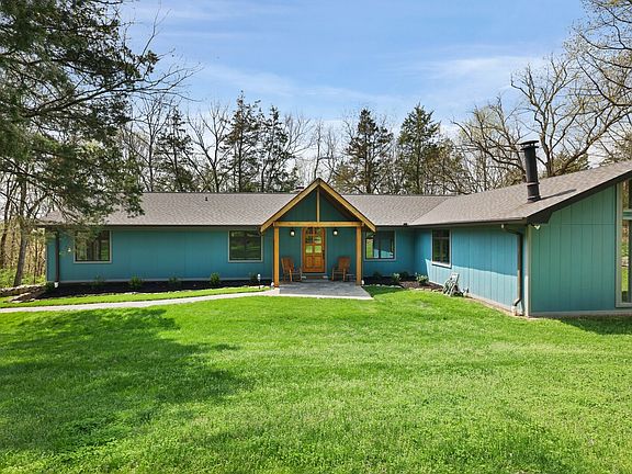 Gorgeous home nestled into a private 3.34 acres. Open-concept living space boasts a stacked stone fireplace and floor-to-ceiling windows. The kitchen offers stainless steel appliances and a new stovetop. The den features soaring cathedral ceilings. Renovated bathrooms offer trendy tile work. The master bath has an updated toilet and shower door. Fall in love with the fully finished basement including a tile fireplace, bedroom, laundry, and bathroom. Screened-in porch and uncovered deck overlook the backyard. Other updates include new paint, hot water heater, garage door openers, added dehumidifier, blinds, and seller to add sliding glass door. Exterior updates include a drainage system, landscaping, and exterior lights.
