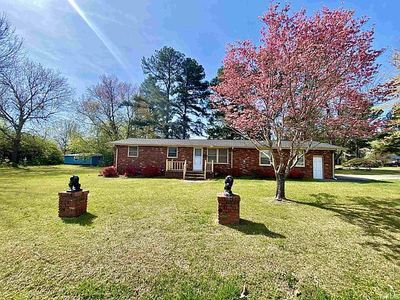 Desirable brick ranch with a garage on a large lot with mature trees! The garage is deep and has room for a workshop area. There's also a large storage area in the garage. Enjoy hardwood floors throughout most of the house and an updated bathroom. House is very clean and move in ready. Located about 10 minutes from Campbell University.
