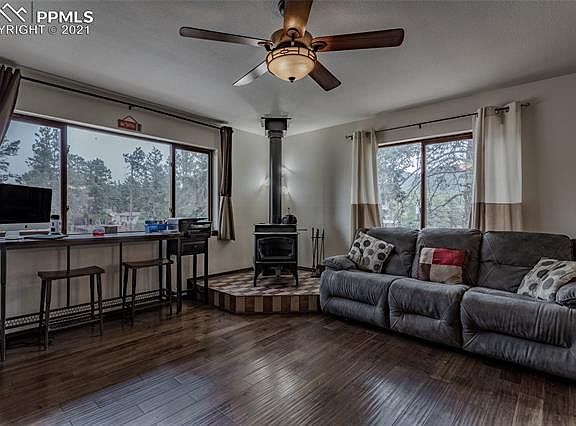 Charming bi-level home located in downtown Woodland Park. This home includes cedar siding, wood flooring, and dark wood accents throughout. Enjoy the wood burning stove set on a tile platform. Cozy eat-in kitchen with a walkout to the fenced back yard. This home has 3 spacious bedrooms and a large laundry room with plenty of space for storage. This great location is just a couple of minute walk from all the downtown attractions and festivals.