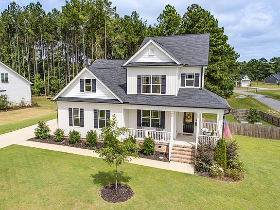 This elegantly appointed home is perfectly situated on a spacious corner lot, complete with a side-load garage. Relax on the inviting rocking chair front porch, knowing the sellers have meticulously handled every detail. The home boasts numerous upgrades, including CAT5E wiring throughout, with connections in all bedrooms and potential for future expansion. Smart Fans have been installed in the living room, bonus room, and screened porch. The expansive dining room, located adjacent to a stunning kitchen with an island bar, is ideal for hosting gatherings. The generous living room features built-in cabinets and opens to a serene screened porch, enhanced by accent lighting. The first-floor primary bedroom offers a luxurious retreat with a rainfall showerhead, dual vanity, and two walk-in closet. The second floor provides endless possibilities, with two oversized bedrooms, space for a home office, and a fantastic bonus room. Outside, enjoy crisp fall evenings by the fire pit or cultivate fresh, organic produce in the four raised bed gardens. Conveniently located near the vibrant Wendell Falls, Flowers Plantation and charming downtown Wendell, Zebulon and Clayton, you'll have easy access to shopping, dining, and local breweries.
