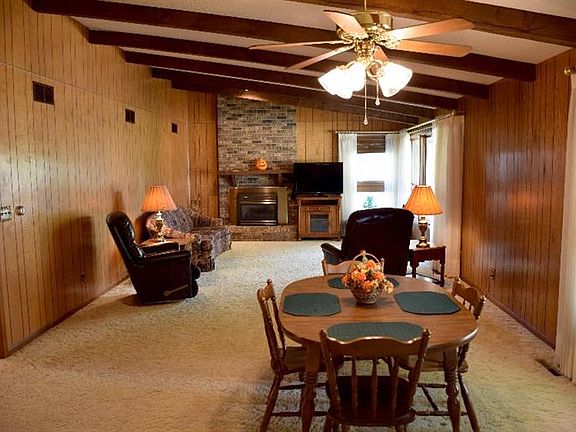 A Grand Entrance into this spacious warm and inviting Brick Ranch with open floor plan, vaulted ceilings, large kitchen with snack bar, formal dining, 2 large bedrooms, main level laundry and a spectacular living room with warm and cozy gas fireplace. Great space with lower level finished with large family room with gas fireplace, game/recreation area and space with extra appliances. All this and an insulated heated garage. Don't wait call today!