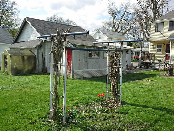 Built in 1908 , Main Floor Foyer , Living Room , Dining Room , Kitchen , Laundry Closet , Bedroom and 1/2 Bath, Enclosed Front and Rear Porch , Covered open Rear Porch. Upper level 3 bedrooms and Full Bath and Enclosed Porch . Large walk up Attic. Partial Basement. 2 car detached garage has added to it a shop area and 2 car , carport. Also in the rear yard are 2 9x9 wooden utility sheds with cement floor. Beautiful Stain Glass in Stairway severing as the jewel to the home, lots of woodwork.