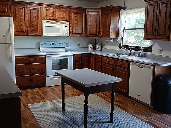 Ranch with walk out basement on dead end street. Kitchen/Dining room combined, living room, full bath, 2 bedrooms on main floor, main floor laundry. Deck off kitchen. 2 car garage with built in cabinets Basement features 3rd bedroom and full bath with second washer/dryer hookup, two finished rooms with sliding door to back yard, large workshop area with lots of storage. New metal roof in 2018 New gas furnace/central air in 2019 New water softener August 2023