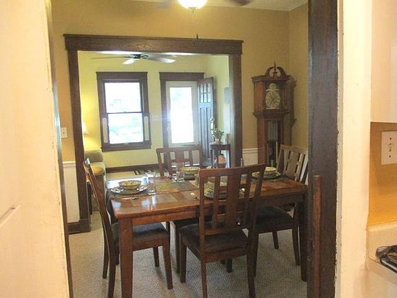 Home is nestled in the trees and cozy. Big back yard..Great place to relax or watch the kiddo's play.. 3 bdrms and 1 bath, utility in the basement. New carpet throughout the upstairs and fresh paint throughout the home. The A/C has just been replaced, furnace and water heater are under 5 years old. New roof last year. A must see.