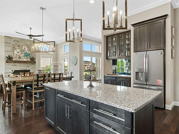 - RoomKitchenFeatures: Granite Counters, Kitchen Island, Pantry, Breakfast Bar, Custom Cabinetry, Breakfast Room, Hearth Room