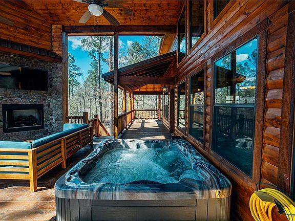 This stunning cabin is located in one of the most desirable neighborhoods Broken Bow/Hochatown area has to offer in Eagle Mtn. Phase 1. Excellent investment, 1.096 acreage property! 3BR/3.5BTH/game room/2616 sq. ft. is a unique floor plan. Wrap around Porch and back deck has a fireplace with a sunk in hot tub. Inside finishes in this beautifully built cabin are well done from the exquisite wood carvings in the den, granite, cedar posts, and amazing rock/tile showers. Downstairs master suite has a rock waterfall shower with soaker tub. Upstairs bedrooms have there own private bathrooms and balconies. A balcony is located off of the game room as well. A Dog house underneath the staircase, a signature of Sooner Cabins in every build. All furnishing and appliances are included in the purchase price. This cabin is only minutes away from the lake and walking distance from gift shops, winery, coffee and ice cream shop, and restaurants. More pictures to come stay tuned.