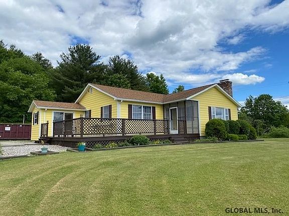 Location Location Location. Country living at it's best in this custom built 1544 sq ft ranch located 10+ Acres. Great for gardens, horses, cows or even some chickens. Large yard for family fun. Most amazing sunsets from the deck over looking your very private landscaped yard. This well maintained, custom built three bedrooms, 2 baths ranch w/large kitchen that opens to the dining area just off the spacious livingroom. Home has a full, dry, partially finished basement ,could easily be turned into additional living space. Even comes w/ an oversize two car garage & shed for your toys and animals. Home is in the country yet you can be in Albany or Saratoga NY Manchester VT or even Williamstown MA in less than an hour.