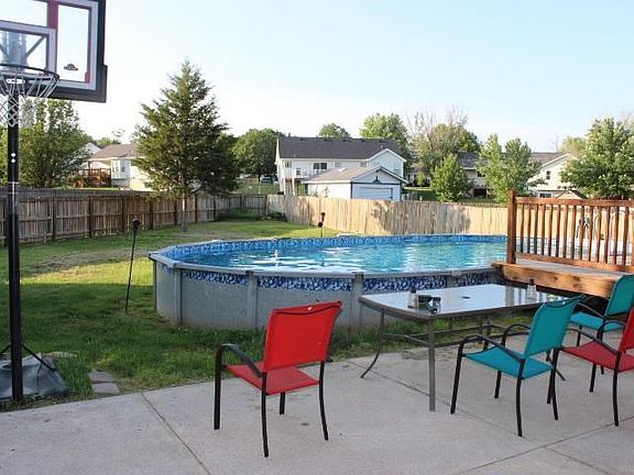 WOW! 4 bed + sleeping area, 2.5 bath with mostly finished basement great for entertaining with its own wet bar! Large kitchen with breakfast bar and pantry, formal dining with crown molding, great room with woodburning fireplace, living room and half bath complete the main level, upstairs youll find an awesome master bedroom with vaulted ceiling, large walk in closet and full bath on one end-3 more bedrooms and another full bath. Moving outside youll find a HUGE back yard with extended patio, oval above ground pool and utility shed-all surrounded by privacy fence!! Lots of updates!! You have got to see this one!! HSA home warranty included!!