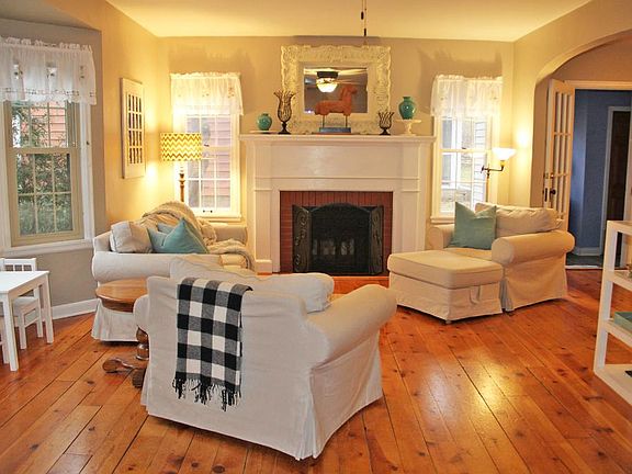 Stunning 3 bedroom, 2 bath, two story home. Adorable fort/tree house in the back yard which is an awesome addition to a private, relaxing and kid-friendly oasis! Updated kitchen with stainless applieances. Beautiful wood floors throughout. Many updated windows. Cozy fireplace setting. His and hers closest in the master. 3 bedrooms on one level! In-town on quiet side street. Must see to appreciate!