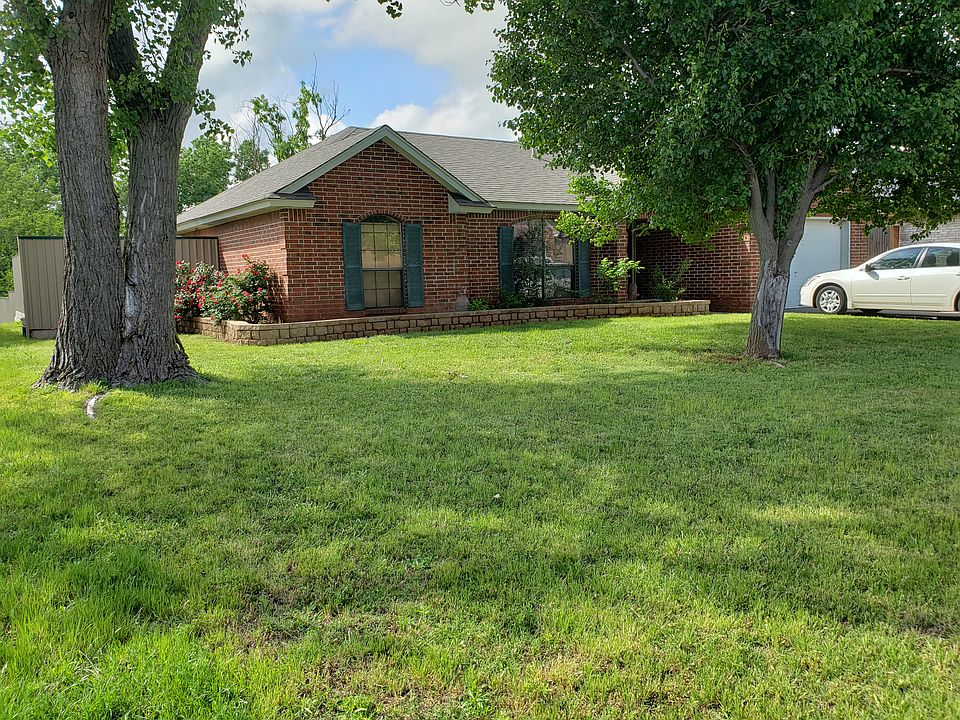 This is beautiful starter or rent house and is a 3 bedroom, 1.5 bath home. It is in a great quiet neighborhood where it is nestled right up to a little taste of nature. Part of the property is out of city limits and ends at the center line of the creek bed below so there are no neighbors behind you with the exception of some livestock and wildlife. The home is great on the budget as far as utilities, as it has a gas tankless hot water heater, new and upgraded HVAC, and brand new roof. The backyard is perfect for kids or pets and secured with a new reinforced steel fence/ chain link. This would be a great starter home with the ability to easily rent in the future or be a great home for a college student at SWOSU.