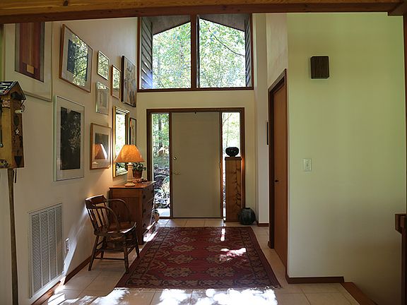 If location is important to you, then I hope you take a close look at this Lindal Cedar Post and Beam Home. It's a dream come true, a vibrant community, the golf course across the street, floor to ceiling windows looking out at the forest, and 10 acres of beautiful hardwoods, pines and flowering trees all around you. But the uniqueness of this home doesn't stop there: If you love the unusual take a step inside: The ceilings are all cedar wood, an extremely large kitchen with a stand alone wood burning fireplace, a kitchen island that's large enough to sponsor your own cooking show, and a rock solid home, literally. The foundation of this home actually sits on shale rock...... The main floor has just the right living space: A beautiful foyer, spacious kitchen, dining area, a great room that feels like you are outdoors, the master en-suite, an office, and a screened porch where you will never want to leave. And of course the laundry room is also on the main level. Take a walk to the lower level and you will find an extra large craft room as well as a work shop, another living room area, a bedroom and full bath and let's not forget an out-of-season large clothing closet. As you know, it is so hard to capture the true essence of a home so I hope you will call today to see 109 Esmont.