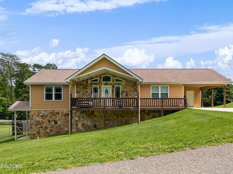Are you searching for a spacious home that can accommodate the whole family? Look no further than this stunning 4-bedroom, 3-bathroom home, built just 4 years ago! From the moment you step inside, you'll love the open-concept living area. The primary bedroom boasts double closets and a gorgeous tiled walk-in shower. The main level also features two additional bedrooms and a full bath located on the opposite wing from the primary suite for added privacy. The lower level offers a versatile Den/Rec room, a fourth bedroom, and a full bath, ideal for a teenager or adult child living at home. The exterior showcases low-maintenance fiber cement siding with attractive rock accents. Enjoy the outdoors with two covered porches, the front porch offers breathtaking mountain views, and the back porch is screened for your comfort. Nestled in a fantastic neighborhood, this spacious home is a rare find at this price. Don't wait, call today to schedule your private tour!