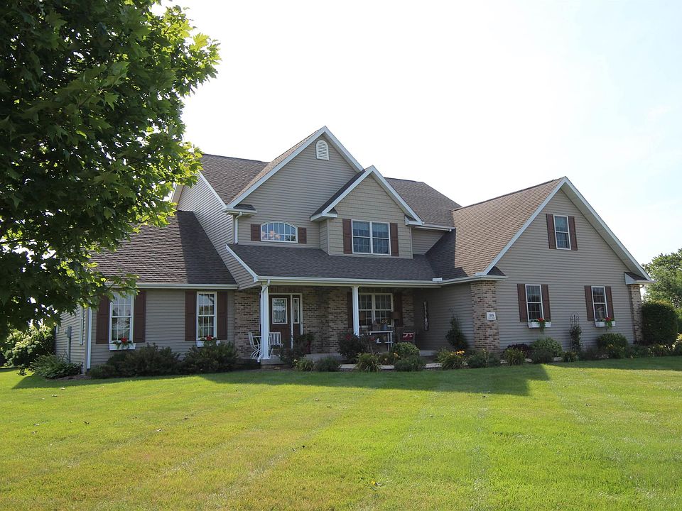 Check out this spacious 5BR/3.5BA home on an acre in the Central school district! Desirable floorplan features main floor master suite & laundry. Impressive 2 story entry and great room with gas log fireplace. Formal dining room plus an informal dining area with slider to 2 tier deck. Awesome kitchen offers an abundance of Aristokraft maple cabinetry & breakfast bar. Fully applianced including washer & dryer. Master suite includes 2 walk-in closets and a private bathroom with dual vanities. Upper level features 4 generous sized bedrooms with walk-in closets! Beautifully finished lower level is great for entertaining with large family & rec rooms plus a wet bar! (Projection tv negotiable) 2 stall attached garage (2511 x 253) plus a bonus 2 stall detached heated garage (34x26). Fabulous 1 acre lot with no neighbors behind! Lush landscaping, 2 tier deck, 18x12 patio, koi pond with waterfall plus a 12x8 garden shed. Charming 24 covered front porch. Quality Andersen windows.