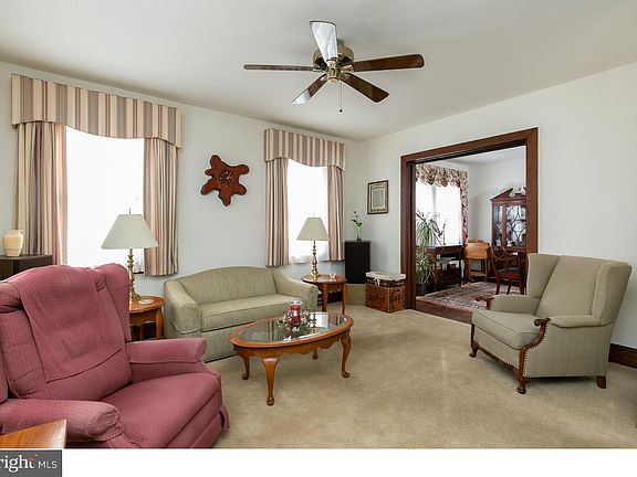 Pride of ownership! This lovely expanded Cape Cod on a half-acre lot is located in a quiet area of Ewing Township. The home is filled with natural light and cottage-style charm. The large front porch is great for relaxing outside on cool summer nights and is the perfect invitation to this 1600 sq ft. home. The home offers a formal dining room so you can enjoy the holidays around the table together. The spacious living room leads you into a large office. All three bedrooms are a nice size and each level of the home has a full bathroom. The over sized fenced-in backyard offers a large cottage where you can relax. It features a wood burning stove for warmth in the winter. In addition, there are three other sheds for storage, and plenty of yard space! Other major features include a long driveway leading to a detached garage and workshop, a brand new roof, beautiful chestnut molding and doors, pine hardwood floors, newer carpeting with original hardwood floor underneath, full basement with outside entrance, gutter guards, and plenty more. This home will not last!!