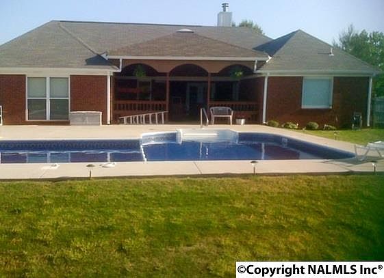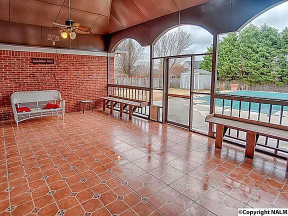 DRASTIC PRICE REDUCTION FOR QUICK SALE * Beautiful full brick w/ inground pool *Amazing outdoor living/entertaining area * Large L shaped pool * Covered rear tiled patio * Private tree lined backyard * Smooth ceilings * Spacious great room w/ gas fireplace * Trey ceiling * Stainless steel appliances * Kitchen island * Large master suite with french doors leading to rear patio * Glamour bath * Tile surround walk-in shower * Garage converted to BR great for in-law suite or home office * Plenty of room to build a garage * 15 minutes to downtown Huntsville *