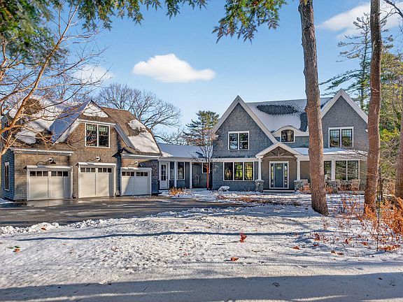 On Falmouth Foreside, this 2016 custom shingle-style residence combines the timeless elegance of a coastal estate with thoughtfully integrated modern amenities. Inside, over 5,700 square feet unfolds with a dramatic foyer, chef's kitchen, and a breathtaking living room where an expansive wall of windows blur the line between indoors and out. A cozy den with fireplace and a formal dining room create spaces for gatherings large or small. The layout offers five ensuite bedrooms, including a main floor primary suite with private deck and laundry. A 3 car garage connects to a mudroom, fun bonus room, and a temperature controlled wine cellar. Outdoors, terraced lawns and gardens lead to a resort style heated pool and firepit, with shimmering glimpses of Casco Bay beyond. Every detail, from the screened porch to the thoughtful millwork, speaks to the art of hospitality and is wrapped in the timeless presence of a grand coastal estate.