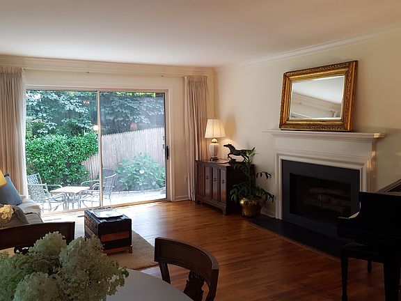 This lovely corner townhouse features a large first floor master bedroom, dressing area and bath. Sunny and spacious, this Forest Ridge condominium is privately situated amid flowering trees and gardens, and is walking distance to town. It's interiors are fresh and bright throughout, with a gracious entry foyer, eat-in kitchen, dining area with bay window and living room with fireplace and glass doors that lead to a beautiful, private flagstone terrace. The second floor features oversized bedrooms and full bath, laundry room with skylight, and two sizeable storage areas. Interior finishes include hardwood floors and crown moldings, and is fully alarmed. An attached one car garage with built-in cabinetry and excellent parking all blend to make this charming condo a rare and special offering. Per owner: two storage areas equal 245 additional square feet.