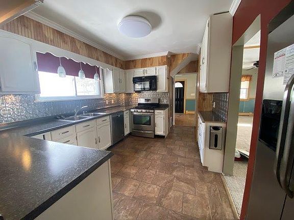 Lovely home with a lot of updates. It has a great kitchen with stainless appliances, plenty of cabinets and counter space and an attractive backsplash. The large living room/dining room combo provides that open concept feel. There's also a first floor master with large walk-in closet, master bath and French doors leading to the back yard with patio. There are three bedrooms on the second floor, so you can choose one of those for the master if you'd like. You could then use the first floor space as a family room. A full bath and a walk up attic (for easy storage) round out the upper levels. The basement is partially finished with a nice bar, tongue and groove walls and recessed lighting in the ceiling. There is a chimney if you want to install and pellet or coal stove. There is heat in the basement and a half bath, making it a great game room. The shed and appliances are included. Call today!