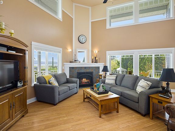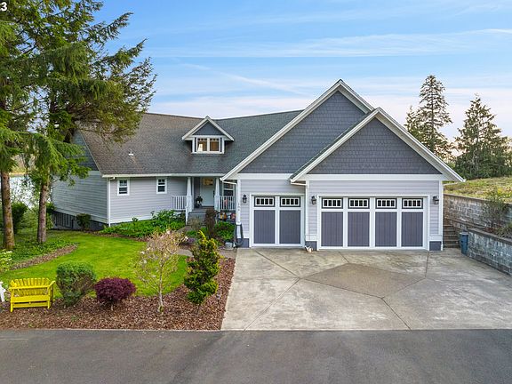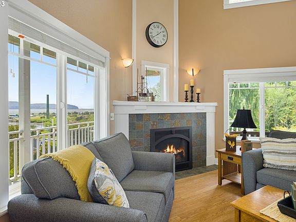 Welcome to this luxurious VIEW home with big charm! Situated to perfection, you'll be captivated by the stunning views of Tillamook Bay to Pacific Ocean on not one, but two west facing covered decks. You can't help but appreciate the quality craftsmanship that is showcased throughout this 3 bedroom/2.5 bathroom home; complete with an office, library, and two cozy nooks on the second level. 15' tall ceilings. Radiant floor hting. The open floor plan is perfect for entertaining & the master bedroom on the main level offers an ideal layout for everyone. The cooks kitchen is ready for all your culinary creations. Storage is not an issue here, with plenty of room for all your needs. Come and enjoy the community of Garibaldi and experience the ultimate in sophisticated coastal living