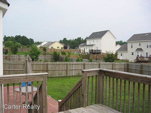 Sunset Forest Fuquay-Varina Three Bedroom 2.5 bath wf Garage - Fuquay-Varina, Sunset Forest, three bedroom, 2.5 bath home, two story, covered front porch, back deck, kitchen with stove, refrigerator and dishwasher, separate dining, living room with gas fireplace, three bedrooms upstairs, tan carpet/wood floors and one car garage, fenced back yard. Within 20 minutes of downtown, close to 55, RTP, Buies Creek, shopping and restaurants. (RLNE4318926)