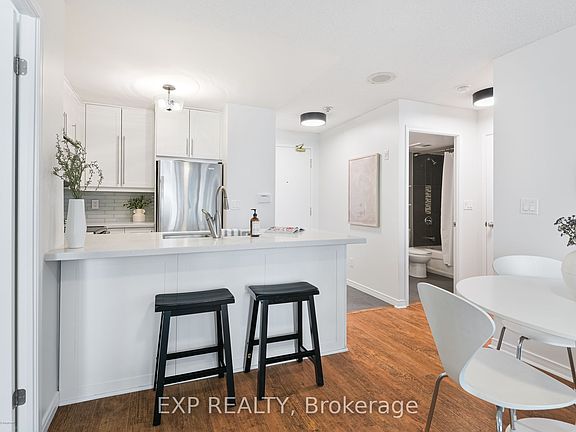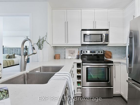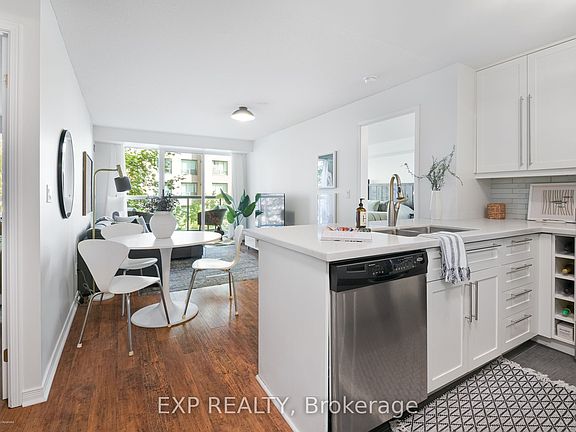 Tucked quietly across from the storied stalls of the St. Lawrence Market where the scent of fresh bread mingles with the hum of community this warm, welcoming two-bedroom, two-bathroom residence offers a rare blend of modern comfort and historic charm. Located in a discreet low-rise that blends seamlessly into one of Toronto's most iconic neighbourhoods, the home feels like a well-kept secret: just steps from some of the city's best cafes, green spaces, and cultural landmarks, yet quietly removed from the city's rush. Inside, the space opens up generously. Floor-to-ceiling sliding glass panels flood the main living and dining area with soft, natural light, drawing the eye toward a lush, tree-lined courtyard a canopy of green that transforms with the seasons and offers a peaceful backdrop year-round. The layout is intuitive and functional, with a distinctly home-like feel thats increasingly rare in todays market. Both bedrooms are large enough to comfortably accommodate king-sized beds, a testament to the intelligent design.The kitchen and bathrooms have been thoughtfully updated, marrying contemporary finishes with timeless appeal. Its a space that feels instantly livable not just a place to stay, but a place to belong.Beyond the suite, residents enjoy access to a concierge (perfect for the modern delivery lifestyle), a rooftop deck with sweeping views for summer entertaining, a well-equipped gym, party room, and more. Here, in the heart of the city, where cobblestone streets meet cafe culture and historic architecture meets modern convenience, this home offers something rare: a true sense of place. Seller has rented a parking space within the building for 14 years; additional parking may be available for rent (subject to availability and third-party arrangements)
