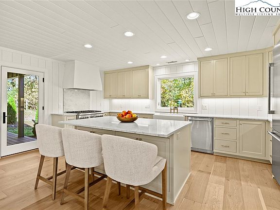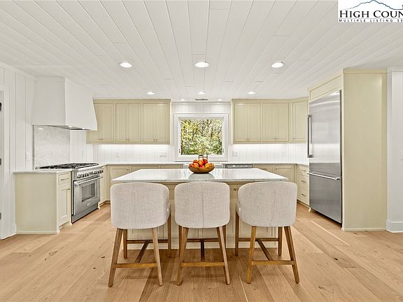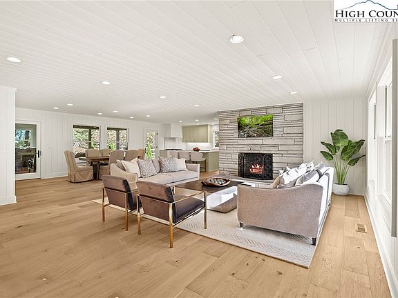 Renovated home offers single-level living minutes from Blowing Rock Country Club (BRCC), downtown Blowing Rock & the Blue Ridge Parkway. The home is located in the sought-after Green Hill area. Both parking areas at the home are level. Enjoy easy, year-round access on paved, city-maintained roads. BRCC members can access the country club by golf cart paths adjacent the home. The open floorplan features a spacious kitchen, dining, & living room with a fireplace (gas logs). The renovated interior has new wide plank white oak flooring, custom cabinets with upgrades & custom marble countertops (honed). Kitchen has new Thermador appliances: 36" built-in refrigerator, 36" six burner gas range, microwave drawer & dishwasher. There's a 1/2 bath, walk-in pantry & laundry room off the common area. The primary suite has a walk-in closet, double vanity, spacious shower with bench, water closet & covered deck you can only access from the primary. All 3 bedrooms have an en suite bathroom. Covered deck with fireplace & gas logs off the common area. Pella windows & doors, solid Knotty Alder front door, Toto toilets. Laundry room has full-size washer/dryer & deep stainless steel sink. Renovation, infrastructure & finishes were done with quality in mind. Renovations include: siding, roof, plumbing, electrical, spray foam insulation, doors, tankless water heater, decks, HVAC, radon mitigation system, covered front porch/entry and more. Sealed crawl space w/ dehumidifer. New, upgraded gutters: 6" half-round seamless gutters with 4" round smooth downspouts & forged cast hangers. New landscaping with a focus on evergreens including grading, walkways, parking areas. The exterior is new smart siding. Decking is Trex (trex.com). See attached floorplan. Easements as recorded. Broker interest. Home is staged & furnishings are negotiable. Originally built in 1965 with extensive renovations completed 2023-2025.