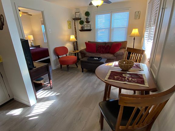 Furnished 1 bedroom, 1 bathroom just a few blocks from the downtown courthouse square. Month to Month rental. Located at back of property the unit is on the 2nd floor of a 2 story walk-up. Tenant pays rent, water, sewer & trash $875 security deposit. Landlord takes $150 utility deposit and tenant reimburses each month for electric, gas and wifi. Owner is real estate agent.