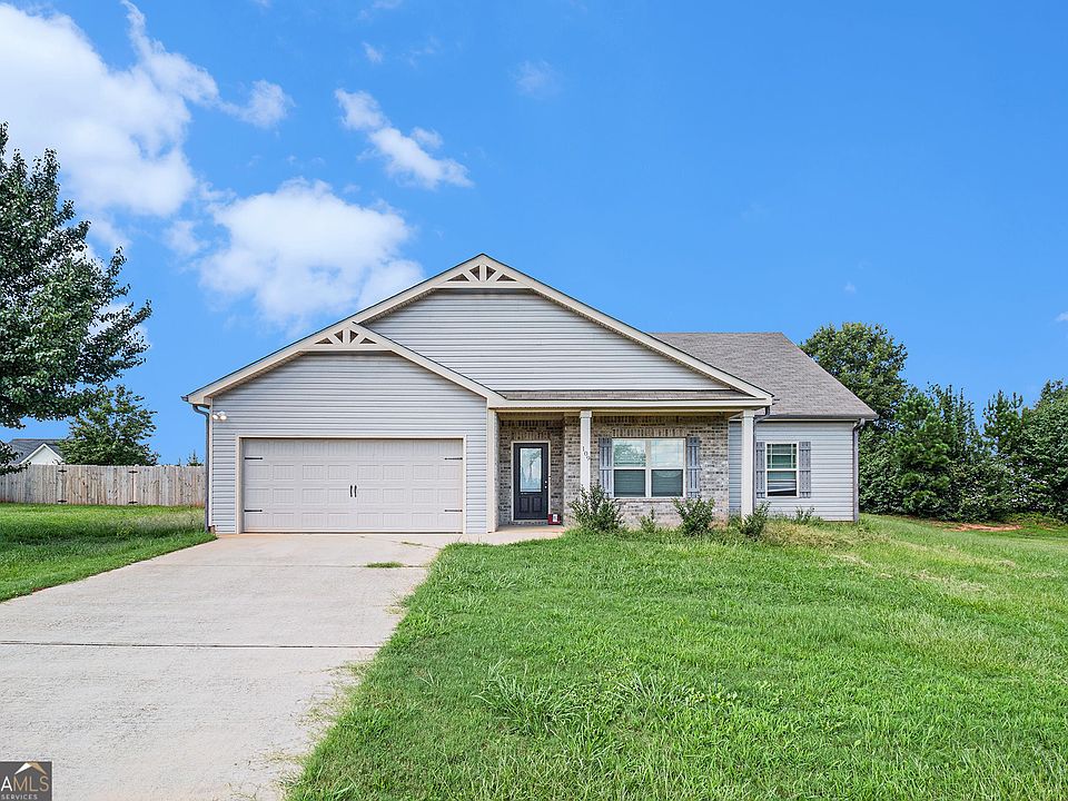 Welcome to this charming 3-bedroom, 2-bath ranch-style home offering 1,719 sq ft of comfortable living! Step inside to an open-concept layout where the kitchen flows seamlessly into the living room-perfect for everyday living and entertaining. The cozy fireplace adds warmth and ambiance, while the separate dining room provides a view of the backyard. The kitchen features sleek all-black appliances for a modern touch and easy, smudge-free maintenance-a true kid-friendly zone! Retreat to the spacious owner's suite, complete with a tray ceiling, large walk-in closet, and a luxurious en suite bath featuring dual sinks, a soaking tub, and a separate shower. Enjoy outdoor living on the covered patio, ideal for seasonal gatherings. With no HOA and the convenience of a single-level ranch design, this home checks all the boxes for comfort, style, and functionality.