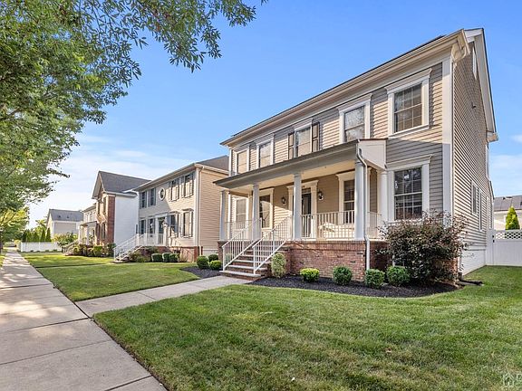 Welcome to this exquisite 3-bedroom, 3.5-bath Colonial home with an oversized attached 2-car garage, electrically wired for an EV charger! Nestled in a highly desirable community just steps away from the lake. This home is in excellent condition and boasts a charming front porch, perfect for relaxing and enjoying the neighborhood. The interior features a formal dining room adorned with architectural columns, crown molding, and custom shadow boxes. The spacious kitchen is a chef's dream, complete with a large center island, granite countertops, and newer appliances. The family room is flooded with natural light from numerous windows and a sliding glass door that leads to a beautiful paver patio. The fully finished basement includes a full bath, adding valuable extra living space. The fenced-in yard offers privacy and a safe place for outdoor activities. One of the standout features is the owner-owned solar panels, generating approximately $2,500 per year from Solar Renewable Energy Credits (SREC), and an impressive electric bill of roughly $5 per month. Additionally, the heater, air conditioning, and hot water heater were all installed in 2020, ensuring modern efficiency and reliability. Other notable features include hardwood floors, French doors, a double foyer with high ceilings, and an in-ground sprinkler system. The location is ideal, with shops, restaurants, and the lake within walking distance, and convenient access to major commuting routes,Hamilton and Princeton Train Stations. Plus, enjoy the benefits of the award-winning Robbinsville School District. Don't miss the opportunity to own this exceptional home in a prime location! -Showing time. Remove shoes and use shoe covers.