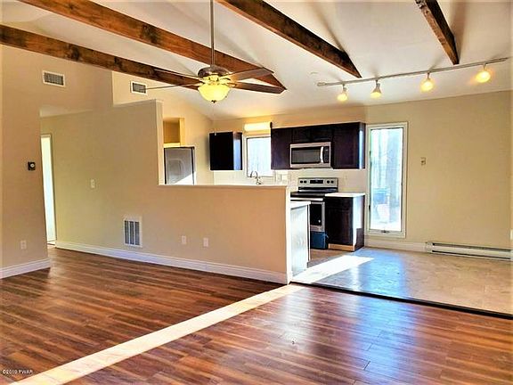 RANCH TOTALLY RENOVATED ON .51 ACRES LOCATED AT THE END OF A QUIET CUL DE SAC JUST A STONE'S THROW TO BEAUTIFUL 90 ACRE SUNRISE LAKE-MILFORD!Every inch of this home is new featuring hardwood floors throughout, central Air Conditioning, ceiling fans in every room, tiled baths, Granite kitchen with new stainless steel appliances and tile flooring, laundry room with brand new washer dryer, 2 Bedrooms and 1 5 baths, master bedroom with private half bath, full tiled hall bath, large 4 Season Pocono room family room with free standing propane stove and lots of windows bringing the natural light. ONE LEVEL LIVING FOUND IN THIS ALL NEW RENOVATED AND UPDATED HOME!