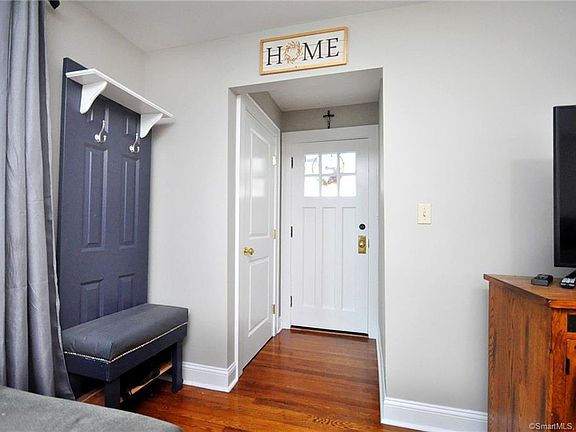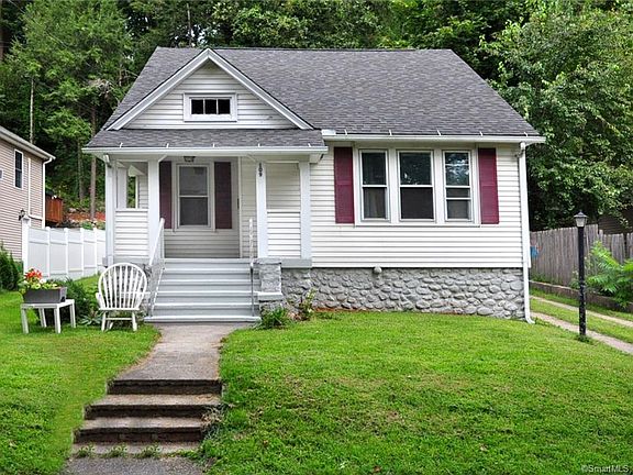 Enjoy a very flexible floor plan in this 1686 s/f cape home with hardwood floors throughout first floor. Large 25 foot living room is perfectly suited for large gatherings or combining living and dining rooms. There is a formal dining room off of the kitchen which can easily be used for an office or den. First floor bedroom can be used as master or guest bedroom with full bath on this level. Kitchen with granite opens to mudroom space perfect for shoes and jackets. Upstairs are two good sized bedrooms and a second full bath. One car detached garage and full basement offers a lot of storage. Roof and furnace are newer. Enjoy the lovely yard and front covered porch. Very easy access to Route 8. Subject to seller finding suitable housing.