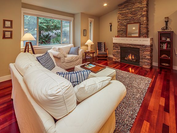 Beautifully built & maintained Gate 2 home with open floor plan, 3 fireplaces, 4 bedrooms, 3.5 baths, a family room & den plus lower level office space/bedroom. Custom construction with granite, hardwood & custom tile work, priced this home is priced at less than replacement cost. Master has a fireplace, walk in shower, jetted tub, double vanity & huge walk-in closet, there is a 2nd bedroom & bath up. The downstairs has 2 additional bedrooms, full bath & laundry room. Security system stays.