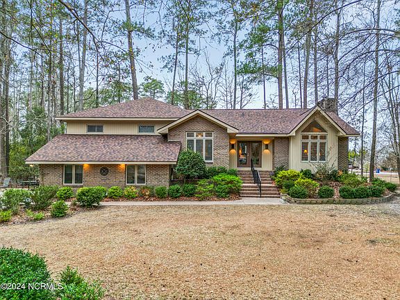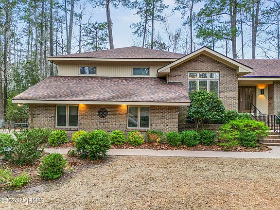 Beautiful 3 bedroom brick home in Pamlico Plantation waterfront subdivision doesn't look like every other house on the block and it includes a boat slip in the Pamlico Plantation marina! Loaded with character, some of the unique features include a large and welcoming foyer, a large living room with fireplace and dining area, a huge kitchen with breakfast area, utility room, In addition to the living, dining and kitchen areas, the main floor also includes two large bedrooms and a full bath. Unique features include a vaulted ceiling and fireplace in the grand living room, a comfortable screened back porch and wood floors throughout the main living area. The main bedroom is oversized with a large bath suite and walk-in closet. As a bonus, there's a small upstairs office and attic storage. The bottom garage level has additional finished space with tile floors and it makes a perfect exercise, office or craft space. The double garage has a workshop area and generator plug. Pamlico Plantation subdivision has a full marina, boat ramp, club house, pool area, tennis courts, pickle ball, playground and more! Located on Broad Creek and the Pamlico River between a pine plantation and a large scout camp, this community feels worlds away, but is only a 10-15 minute drive from shopping and historic downtown Washington. Don't miss this lovely gem.
