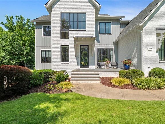 Set gracefully on a cul de sac within the heart of prestigious MacGregor Downs, and custom built by renowned Loyd Builders, this modern farmhouse residence is a truly exceptional opportunity to acquire a pristine luxury home of unparalleled quality and design in one of Cary's most desirable neighborhoods. *** The crisp white brick and board-and-batten exterior, accented with striking black architectural details is stunning and timeless. Inside, soaring ceilings amplify the sense of space and light, creating a refreshing, contemporary atmosphere. Throughout the expansive open floor plan, you'll find exposed brick walls, a meticulously curated selection of high-end contemporary finishes and Hubbardton Forge designer lighting, reflecting an unparalleled attention to detail and sophisticated taste. *** The heart of this home is designed for elevated living and memorable entertaining. The gourmet kitchen - appointed with top-of-the-line appliances, custom cabinetry, a dedicated wine tower, and stunning quartzite countertops and backsplash - opens to a charming breakfast nook, a generously sized walk-in pantry, and comfortable living and dining areas perfect for intimate dinners or grand celebrations. Enhancing the superb functionality of the main floor is a substantial, fully-shelved drop zone conveniently located off the garage entry. This level also features a guest bedroom with an adjacent full bathroom, and a versatile main-floor office or additional bedroom, providing both comfort and flexibility. *** Seamless Indoor-outdoor luxury living extends effortlessly through floor-to-ceiling glass accordion doors that open onto an expansive screened-in porch, fully wired for cable and Sonos audio. A commanding masonry gas fireplace serves as a focal point for cozy evenings and vibrant gatherings year round overlooking the serene, private backyard. *** There is ample space for family and guests with three additional generously sized bedrooms on the second floor. The primary suite is a spa-like retreat, featuring luxurious heated floors, custom double vanity cabinetry, an oversized walk-in shower, and a deep soaking tub. Every detail in the upstairs bedrooms and bathrooms, from a custom-suspended loft bed to intelligent storage solutions behind nearly every closet, has been thoughtfully designed to inspire a feeling of abundance and warm luxury. *** The true pinnacle of entertainment is found in the expansive walk-out basement. with massive recreation/flex space and custom-designed sports bar kitchenette—the perfect setting for cheering on your favorite teams and creating lasting memories. A dedicated guest bedroom equipped with a Murphy bed and an adjacent full bathroom offers unparalleled flexibility. For fitness enthusiasts, a dedicated home gym with a full-length mirror and barre provides the ideal environment to pursue wellness goals in ultimate comfort and privacy. *** This exceptional property is ideally located within minutes of MacGregor Downs Country Club (separate membership required), fine dining, the renowned Koka Booth Amphitheatre, Cary's extensive greenway system, Fenton, and downtown Cary. This is more than just a home; it's an exclusive invitation to a lifestyle defined by unparalleled comfort, refined elegance, and supreme convenience in a highly coveted Cary location.
