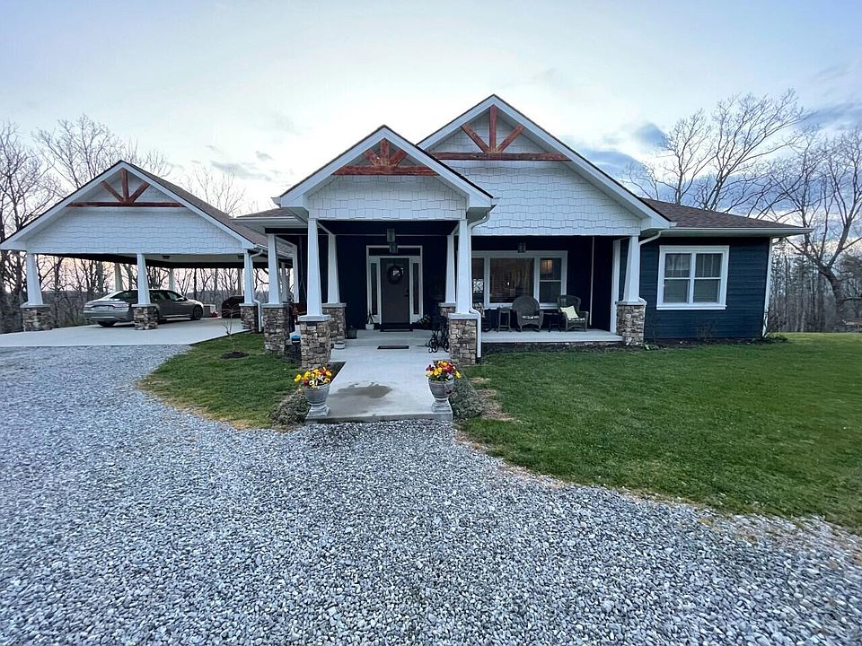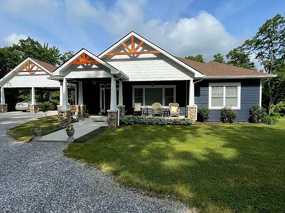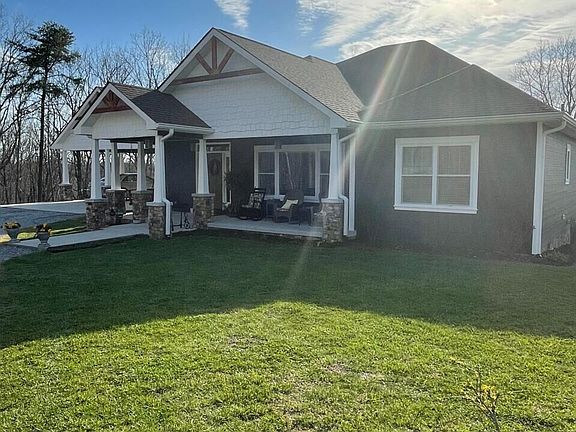 Private, quiet mountain retreat home setting on bluff like views with 21 acres. Home features 2 gas fireplaces one has a chimney that could be wood burner, oak hardwood floors, 13x29ft sunroom, granite counter tops, pantry, hot tub on patio , jetted tub in master bath along with a separate shower, stainless steel appliances, built in bookshelf and all in like new condition. Outside has a 24x36 garage and a building to park your equipment under , storm shelter, beautiful mountain views , a seasonal creek, hardwood trees through out. Located in a very private location and close to the biggest park in the state.