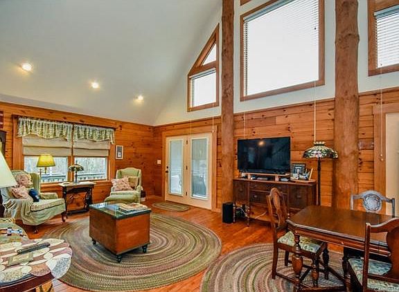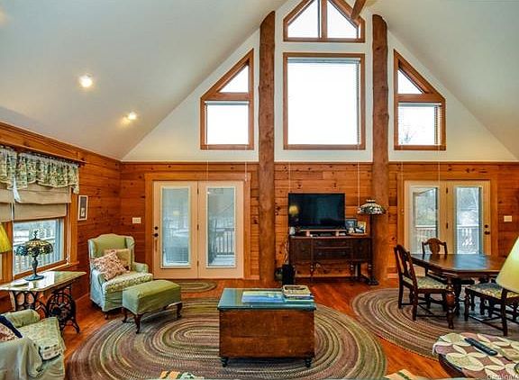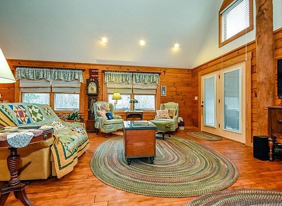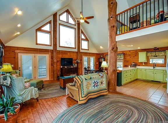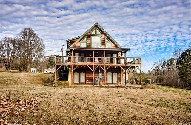 Charming log home sitting waterfront on 1.5 acres. Great location with close proximity to downtown Troutman and Mooresville. Enjoy beautiful views from the covered back porch/deck. Open living area on the main level with 2 beds and 1 bath. Upper level features a loft, master bedroom with balcony, master bath and walk-in closet. Partially finished walk out basement currently being used for a craft room but has many other possibilities. Unfinished section of basement is great for storage. Detached 2 car garage.