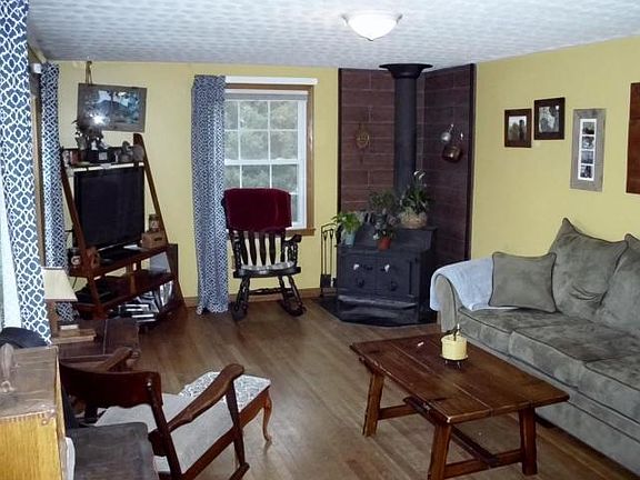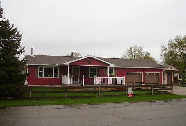 This remodeled ranch home has an open floor plan with many upgrades. Hardwood floors, replacement windows and updated bathroom. Wood stove, 90+furnace and central air. Covered front porch, large private fenced yard. Extra 10x20 bonus building is fully finished with 4x10 covered porch and could be used for art studio, craft room, office, etc. Full basement and 2nd full bath with shower just needs completed with drywall. Great condition home is ready for you to move right in.