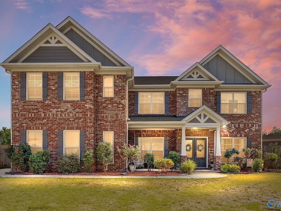Step into luxury with this exquisite 5 bed, 4 bath full brick home nestled in a peaceful cul-de-sac in the highly sought-after Madison City School District. Upon entering you'll be captivated by the gorgeous architectural detailing throughout; elegant wainscot, coffered ceilings, and designer trim that exudes sophistication. Tasteful neutral colors create a canvas that complements any design style. The expansive open floor plan enhances the sense of space, perfect for both entertaining and everyday living. Upstairs, vaulted ceilings adorn the generously sized bedrooms with ample storage. Indoor and outdoor fireplace add to the charm. Separate single bay garage could be used for workshop.