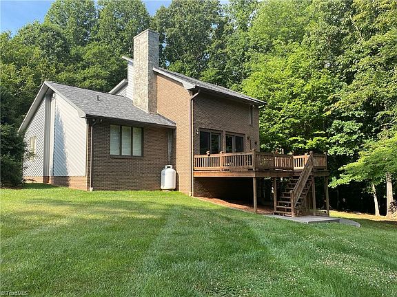 Fantastic home on 8.64 acres not in city limits. This beautiful home has been lovingly maintained and is in great location. Huge living room with gorgeous stone fireplace with gas logs, wood flooring, vaulted ceiling, and lots of natural light. The kitchen has lots of cabinets, granite counter, and tile backsplash. The primary bedroom is privately located on upper level with a loft area. Primary bath has double sink vanity and tile flooring. 2 car attached garage and basement garage. Sit on back deck and just enjoy nature. Outdoor space also includes patio at basement. The wooded area around house cleared of under brush offers a more open feeling. Possible building sites on property. Seller has NC Real Estate license.