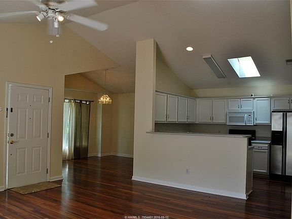 Nestled on a wooded lot this spacious 3BR/2BA one story (stick built) home is priced to sell! An open floor plan with cathedral ceilings, wood floors throughout, the interior has been freshly painted, ceiling fans, skylights, kitchen with numerous cabinets, stainless steel refrigerator and a pantry. A formal dining room, large living room with glass sliders that lead to a patio and an over-sized one car garage and so much more.