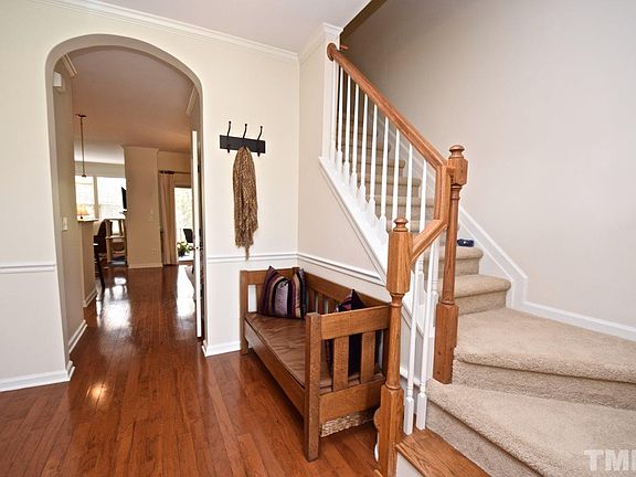 GORGEOUS TOWN HOME IN SOUGHT AFTER SEAGROVE FARMS NEIGHBORHOOD OF APEX! Features: Chef's kit w/granite counter tops, SS appls, hardwoods on first floor & 1st level office or formal din rm! Large master w/spa bath! Spacious bedrooms & upstairs laundry! New LUXURY carpet! Fresh Paint! Cute covered porch overlooks pond! Over-sized Garage is a MUST SEE! Additional room in basement! Walk to pool, clubhouse, lake, fishing dock & walking trail! Quick commute to RTP or Raleigh. This one won't last long!