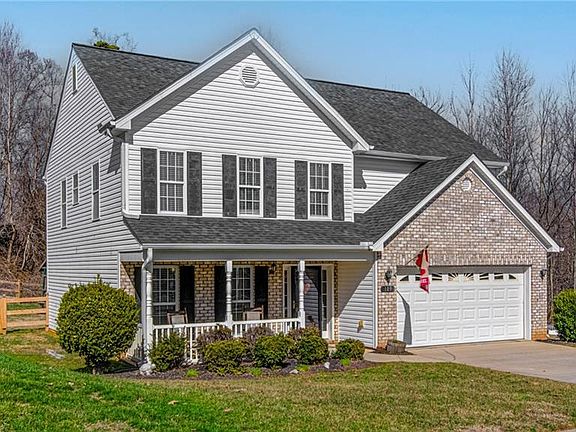 Adorable home on a private cul-de-sac lot located in the heart of Kernersville. You will love the rocking chair front porch, fenced yard with plenty of room for gardening. The inside is the perfect combination of traditional and open floor plan, with a large updated kitchen overlooking your eating area and great room. The kitchen is updated with granite countertops, tile backsplash, hand scraped laminate flooring and newer appliances. There is a great flex space on the main level perfect for an office, play room or formal dining. The second floor has 4 large bedrooms, the primary with a trey ceiling and oversized bath. Don't miss us.