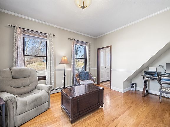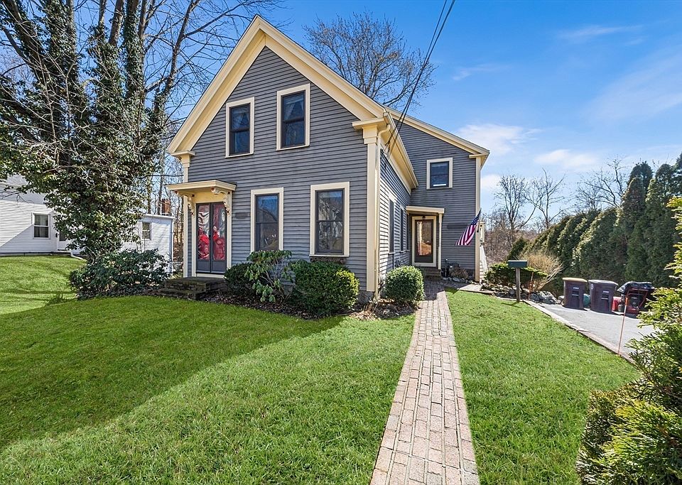 Welcome to 109 High St! Beautifully maintained colonial shows pride of ownership throughout. Large well-equipped kitchen including stainless appliances and recessed lights with dining area has sliders leading to large Trex Deck overlooking the private level yard with hot tub and above ground pool with wood deck. Cozy living room and large family room with wood stove and hardwood floors. First floor full bath and laundry room. Upstairs includes a large primary bedroom with a spacious loft, 2 additional bedrooms, a home office area and a full bath. Additional family room in the lower level with a walkout to the back yard. Great location .3 miles to Jackson Square near shops, restaurants, and commuter rail.