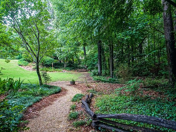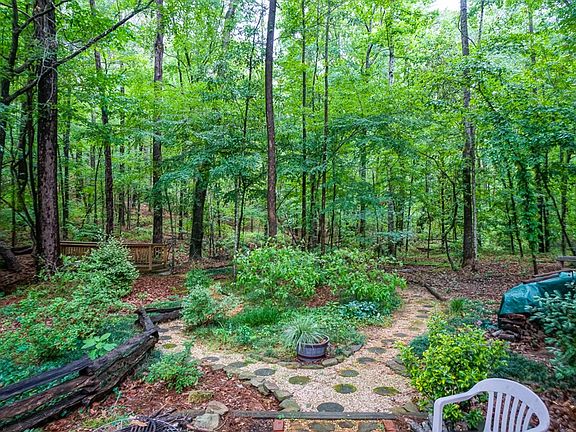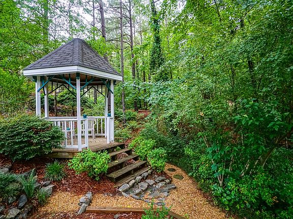 This is IT! Hidden oasis close to amenities. Lovely home sits on a double lot planned by Master Gardener. Wooded privacy with walking trails, bridge over stream, benches & gazebo. Inside are 3bd, 2.5 baths on main floor, living & dining rooms, den plus butler's pantry & great utility room w sink/shelves. A cook's kitchen with new SS appliances, solid surface counters & food pantry, New architectural roof, tankless HWH. Enjoy one-floor living with the added bonus of a walk out lower level with your 4th bedroom, oversized bath, office and wonderful family room.