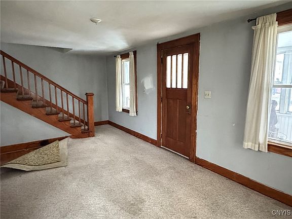 A great opportunity to own right here! This home has an eat in kitchen, formal dining room and charming living room with hardwood floors underneath the carpet. There are 3 good sized bedrooms upstairs, all with hardwood floors. You will love the three season porch off of the front of the house! The basement is dry and has plenty of space for storage. The two car detached garage is spacious and useable. The location is perfect for a small business out of the home, not in need of excessive parking. Property is being sold as-is by the inheritant(s). Conveniently located to highways, you will love the convenience.