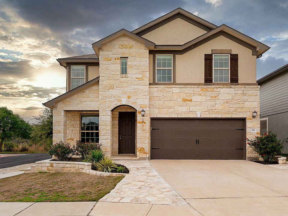Rare opportunity to own a spacious 5-bedroom home within walking distance of historic downtown Dripping Springs, Founders Park and pool! Located in Texas Heritage Village, this home features the largest Meritage Homes floorplan (Sabine) and offers 5 bedrooms, 3.5 bathrooms, two living areas, and a dedicated office—ideal for today’s flexible lifestyles. Situated on a corner lot near a quiet dead end, the home backs to a greenbelt with a fenced backyard and immediate access to neighborhood walking trails. Limestone walkways flank both sides of the driveway, and limestone steps along the side of the home provide convenient access from the side street to the covered front porch. Inside, the main level includes a private office, a spacious primary suite, and an open-concept living area. The primary bedroom offers exceptional privacy and features dual vanities, an oversized walk-in shower, and a generous closet with custom built-ins. The kitchen is centered around an oversized granite island and opens seamlessly to the dining area and living room, with direct access to the backyard. Additional highlights include a laundry room with space for a second refrigerator and a built-in organizing nook off the kitchen. Upstairs, you’ll find four additional bedrooms, including a Jack-and-Jill bathroom setup, plus another full bath. A large secondary living or game room provides flexible space for recreation, media, or study. Built-in storage in the garage adds extra functionality. Recent updates include 2024 HV/AC system, fresh carpet, updated paint, and a Texas Elm tree in the back yard. Enjoy an unbeatable location just minutes from Mercer Street, local breweries, wineries, restaurants, and community events—walk to Founders Day! Easy access to South Austin (approximately 25 minutes) and zoning to highly rated Dripping Springs ISD complete this exceptional ownership opportunity.
