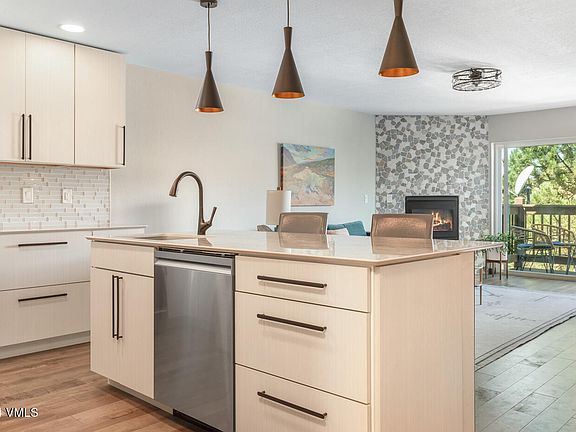 Welcome to this charming and peaceful mountain oasis at the base of Beaver Creek! This high end remodeled top-floor 2-bedroom, 2-bathroom + office condo is perfectly situated in the heart of Avon, offering unparalleled convenience. Enjoy this vibrant community being just steps from Avon Bakery and the Eagle River Trail for biking or walking, and a short walk to multiple restaurants, shops, Avon Lake, Beaver Creek ski access, located across the street at the Westin Spa Resort, and only a short drive to the EagleVail golf course, Vail Villages, and Edwards making this a hard to beat location! Step inside to discover an inviting open layout complete with a dining area, seating at the kitchen island, and a cozy living room with a fireplace. A spacious office/den with French doors is situated just off the gathering space adjacent to the sliding doors out to the private deck, that opens the unit to fresh mountain air. The primary suite features a modern bathroom, and the additional bedroom gives access to a deck that wraps around the north side of the condo. This unit also includes a one-car garage, providing room for your vehicles and gear. Whether you're seeking adventure or tranquility, this condo has the best of both worlds. The remodel includes windows, doors, trim, wood floors, bathrooms, and kitchen giving move-in ready convenience!
