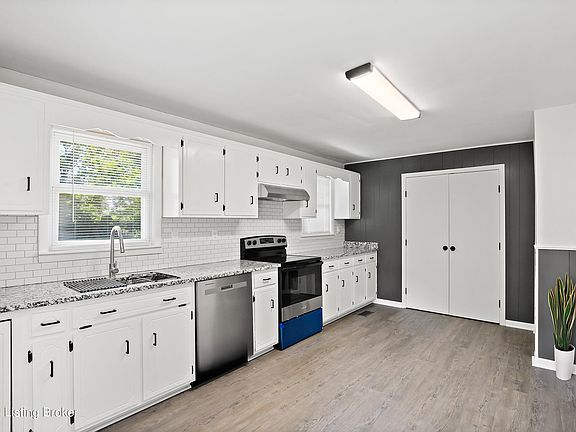 Welcome to this beautifully updated ranch home located just under a mile from downtown Bardstown. Situated on just under half an acre, this property boasts a large yard perfect for outdoor activities. Inside, you'll find wood flooring throughout, with new flooring in the kitchen and bathrooms, and resurfaced flooring in the fourth bedroom. The modern kitchen features new stainless steel appliances, a new backsplash, and updated fixtures, including new ceiling fans. The bathrooms have been tastefully updated, ensuring a fresh, contemporary feel. Additional highlights include a large detached two-car garage with a power door. This home offers the perfect blend of modern updates and a convenient location, just minutes from downtown Bardstown. Don't miss the chance to make this lovely ranch your new home!